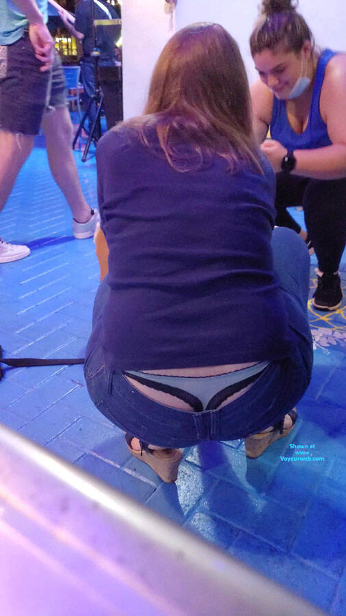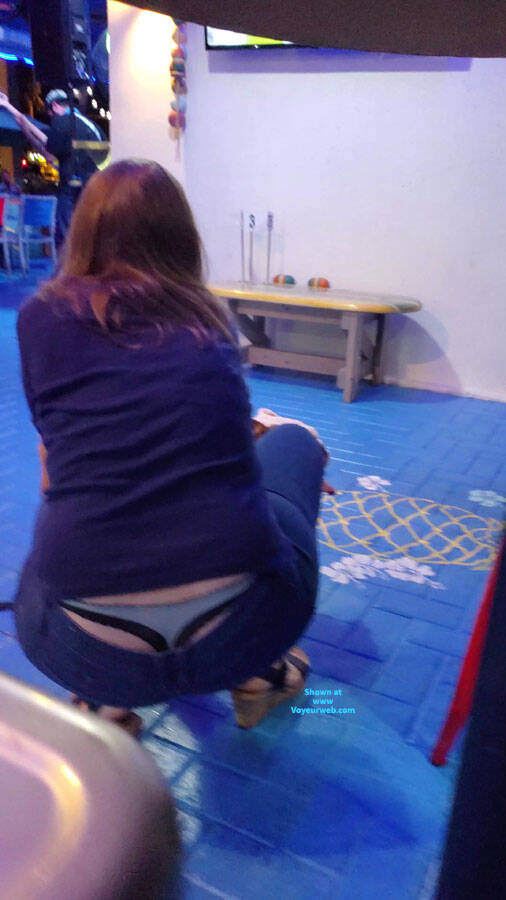 Showing her sexy thong and big ass at a bar.